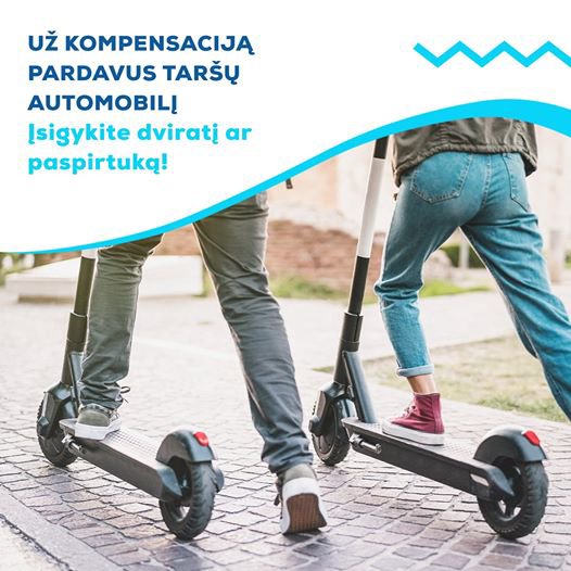 Gauk iki 1000 € kompensaciją! 2020-05-15 Ar žinojote, kad prisidėti prie taršos mažinimo ne tik verta, bet ir apsimoka? Atsisakę taršaus automobilio ir iki 2020 m. gruodžio 1 dienos pateikę tai įrodančius dokumentus, gaukite kompensaciją elektrinio paspirtuko, dviračio ar kitos, taršą mažinančios, transporto priemonės įsigijimui! Kompensacija gali siekti net iki 1000 EUR. Daugiau informacijos apie pasiūlymą>>