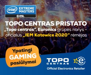 TOPO CENTRAS, EURONICS grupės narys - oficialus "IEM Katowice 2020" remėjas 2020-01-31 TOPO CENTRAS tęsia savo bendradarbiavimą su didžiausia pasaulio e-sporto kompanija „Electronic Sports League“. 2020 metais „Euronics International“ (kuriai priklauso ir TOPO CENTRAS) ir vėl taps ESL turnyrų rėmėju. Artimiausias ESL turnyras įvyks jau greitai: 2020 m. vasario 28 – kovo 1 d. Lenkijoje, Katovicuose “Spodek arenoje”. Čia susikaus 16 stipriausių komandų iš viso pasaulio dėl pagrindinio prizo $500,000. Kviečiame stebėti tiesioginę ESL KATOWICE 2020 transliaciją “Topo Centro” Facebook paskyroje. Plačiau>>
