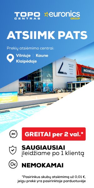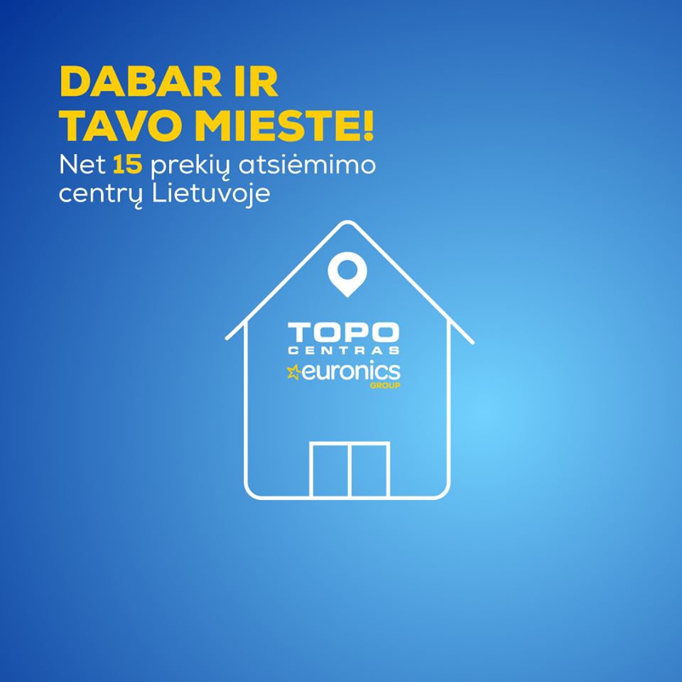 Dabar ir tavo mieste! Net 15 prekių atsiėmimo centrų Lietuvoje 2020-03-27 Džiaugiamės pranešdami, kad šią savaitę Lietuvoje duris atvers net 15 TOPO CENTRAS atsiėmimo centrų. Užsisakius prekes www.topocentras.lt ir pasirinkę atsiėmimą artimiausiame atsiėmimo centre, savo prekes galėsite atsiimti GREITAI, SAUGIAI IR NEMOKAMAI! Greitas prekės paruošimas atsiėmimui per 2 val., nuo užsakymo pateikimo, kainuoja tik 0,01€! Raskite savo atsiėmimo punktą ir gaukite reikiamą techniką patogiai. Daugiau>>