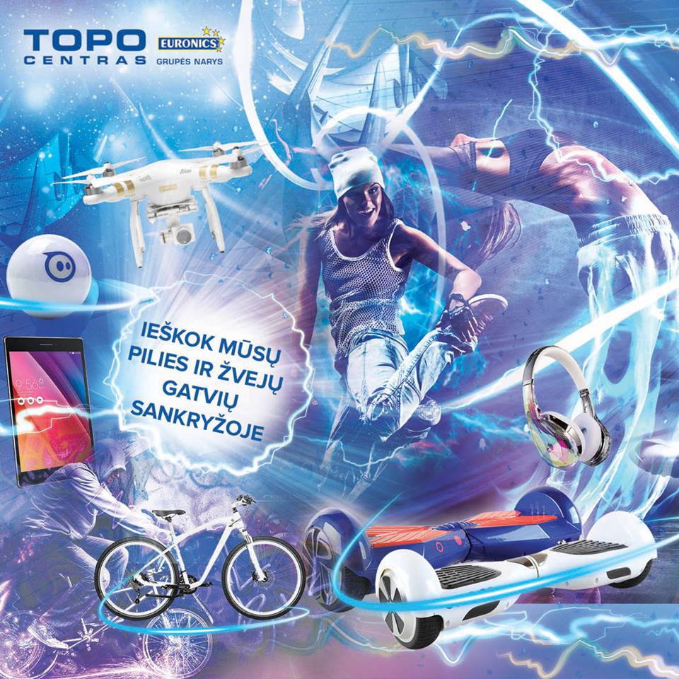 TOPO CENTRAS keliauja į LOGIN 2016! 2016-04-29 TOPO CENTRAS keliauja į LOGIN 2016! Jau nuo gegužės 5 d. čia rasi ir mūsų stendą, kuriame – specialiai šiam festivaliui sukurta dronų lenktynių trasa. Ateik, išbandyk, atsiimk prizą ar pasinaudok kitais specialiais pasiūlymais! Plačiau>>