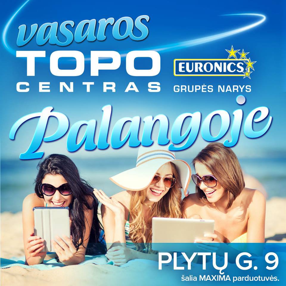 Aplankykite vasaros TOPO CENTRĄ Palangoje! 2016-07-14 Jei atvykę ilsėtis į Palangą suprasite, kad namie palikote telefono pakrovėją, nuspręsite, kad jau laikas įsigyti nešiojamąją kolonėlę ar išbandyti riedį, nebus būtina vykti iki Klaipėdos TOPO CENTRO parduotuvės, nes vasarą TOPO CENTRAS veikia ir Palangoje. Plytų g. 9 (šalia MAXIMA parduotuvės) įsikūrusiame TOPO CENTRE rasite visas turiningoms atostogoms būtinas prekes: foto techniką, telefonus, riedžius, elektrinius dviračius bei daugelį kitų prekių. Net jei nerasite jus dominančios prekės, kelis kartus per dieną asortimentas bus papildomos iš vienos didžiausių, TOPO CENTRO Klaipėdos parduotuvių: gulėdami paplūdimyje užsisakykite norimą prekę telefonu ir apie jos atvykimą Jus informuosime SMS žinute. Plačiau>>