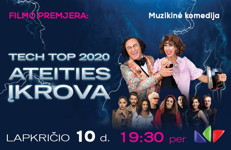 Muzikos žvaigždės susitiko 95-ųjų filmo scenoje 2020-11-06 Lapkričio 10 dieną, 19:30 LNK televizijos eteryje kviečiame stebėti neįtikėtinos, naujos muzikinės komedijos „Tech Top 2020: Ateities įkrova“ premjerą. „Tobulo pasimatymo“ režisieriaus Robertos Razmos kuriamame naujo formato filme veiksmas kelsis atgal į 95-uosius metus. Skaitykite daugiau>>