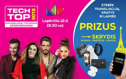 Stebėkite TECH TOP 2019 transliaciją ir laimėkite šaunių prizų! 2019-11-11Nepamirškite lapkričio 12 dieną 19:30 įsijungti LNK kanalą ir stebėti jubiliejinius penktuosius nacionalinius technikos apdovanojimus TECH TOP 2019. Spalvingo šou metu bus išrinkti ir apdovanoti metų geriausi televizoriai, kompiuteriai, telefonai ir kiti technikos įrenginiai. Scena pavirs įspūdingu trijų aukštų namu, kurio išmaniuosiuose kambariuose šou kurs ryškiausi muzikos atlikėjai: G&G sindikatas, Vaidas Baumila, Monika-Marija, Justinas Jarutis, Džordana Butkutė ir kiti.Daugiau>>