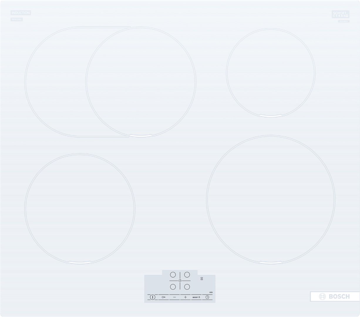 Indukcinė viryklė, padalyta į sritis
