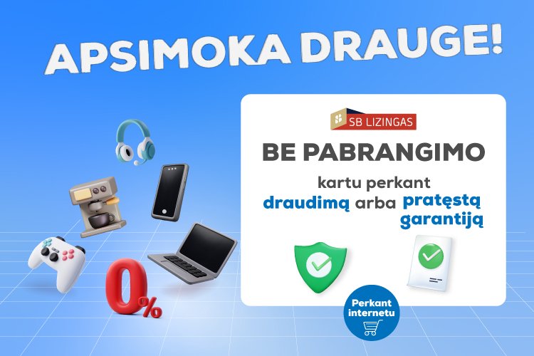 Perkantiems papildomą draudimą arba pratęstą garantiją su atrinktomis prekėmis* – „SB Lizingas“ 12 mėn. laikotarpiui BE JOKIO PABRANGIMO!