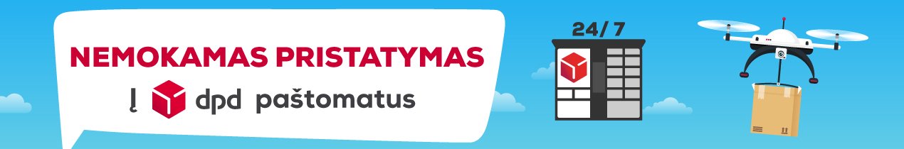 • Nemokamas pristatymas į DPD paštomatus galioja visiems matmenis atitinkantiems pirkiniams ir kurių vertė yra didesnė nei 30 €.