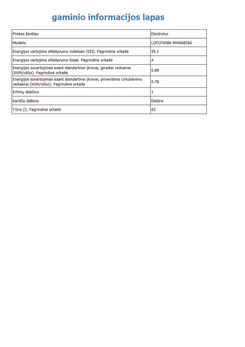 | Energijos efektyvumo klasė | A |
