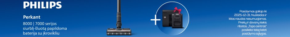 Pasiūlymas „galioja iki 2025-12-31. Nuolaidos ir kitos naudos nesumuojamos. Prekių kiekis ribotas. „Topo centras“ pasilieka teisę keisti pasiūlymo sąlygas.
